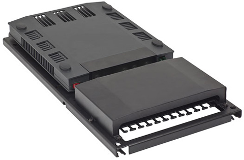 SAILOR 6080 units. The connectors for DC power are placed at the same end of the unit for easy mounting and installation. The connection between the Power Supply unit(s) and the connector panel are protected against water ingress by a protection cover. A cable relief bracket to secure heavy cables is integrated in the wall-mount tray. When mounted vertically the Power Supply Unit and Charger and the SAILOR 6080 Power Supply fulfill IP32 in areas with more than 42 V and IP22 in other areas.
